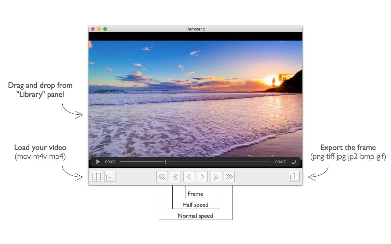 Frammer X is a simple application that allows you to extract your favorite frames from a video, with an intuitive and clean interface.