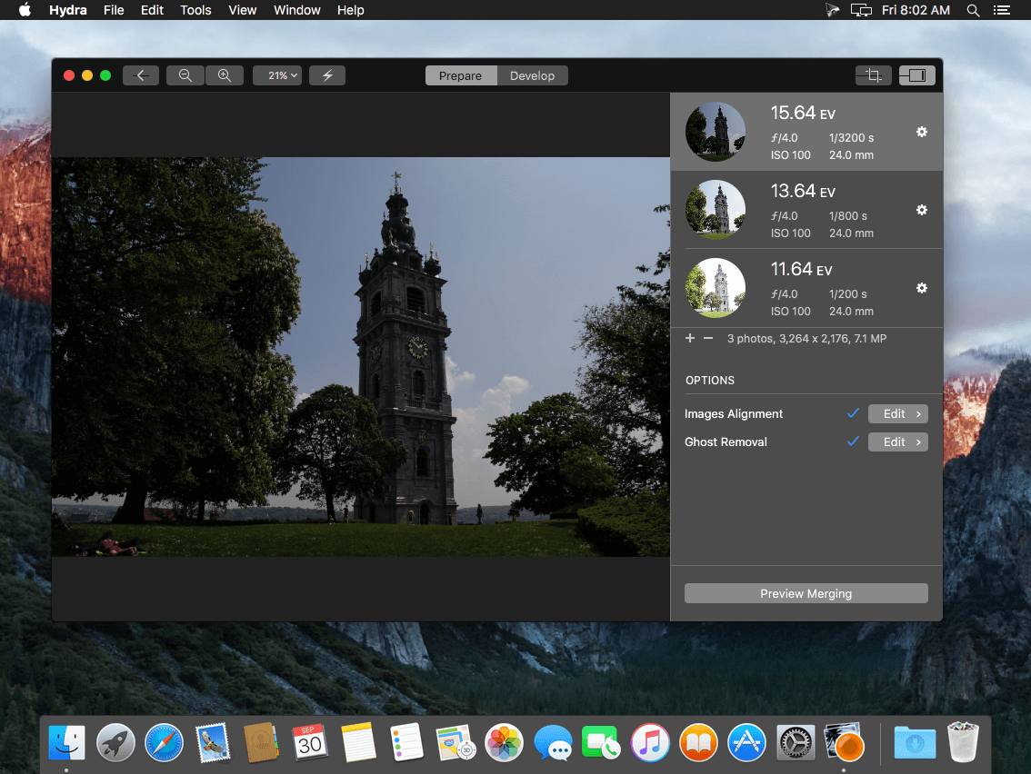 Hydra allows you to overcome this limitation by merging a number of photos with different exposure settings, and to create a natural image that is much closer to what your eyes actually see. Alternatively, Hydra can also artistically push contrasts to increase drama and emotion in your pictures beyond reality. This new release of Hydra has been optimized for latest macOS enhancements, and it provides native Metal support with maximum performance, in addition to a more modern and simpler user interface.